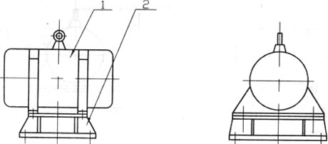 結(jié)構(gòu)如圖1所示。由振動(dòng)電機(jī)(1)、底座(2)兩部分組成。振動(dòng)電機(jī)和底座由螺栓緊密地固定為一體,由于底座堅(jiān)固地安裝在料倉壁上,這樣就構(gòu)成了單質(zhì)點(diǎn)定向強(qiáng)迫振動(dòng)系統(tǒng)。
