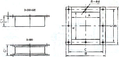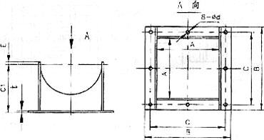 注:1、螺旋機(jī)輸送長度及尺寸L均見表二、表三。 2、圖n×500為蓋板卡子尺寸,n值視螺旋機(jī)長度而定。 3、圖中尺寸p為進(jìn)出料口中心線。